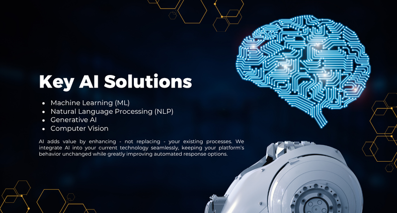 AI’s value lies in augmenting existing business processes, not replacing them, allowing for enhancement without a complete reinvention of your product. Our team can effectively integrate AI into your current technology, meaning users see no effective change in existing platform behaviour while significant improvements are gained in the automated response options available.