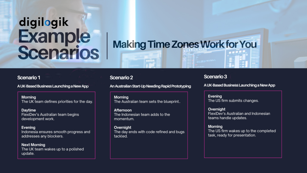 Let’s explore how this cross-timezone collaboration can benefit businesses in Australia, New Zealand, the USA, and the UK, and why Digilogik’s global versatility might just be the solution you didn’t know you needed.