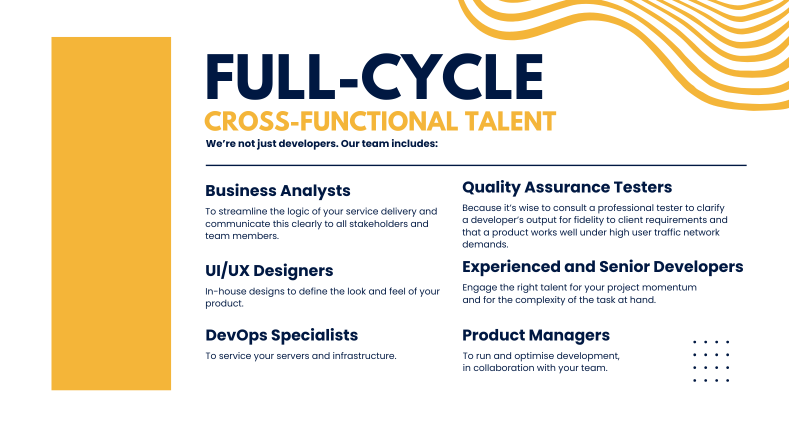 We cover every aspect of your development needs, under one roof. Quality is non-negotiable, you can supplement your team for complete development operations.